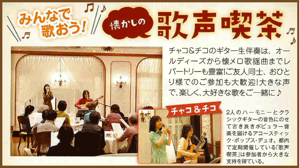 一方ではじめてふれる方が多い歌も。印象的だったのは「海をこえて友よきたれ」。この曲は昭和39年東京オリンピックを盛り上げるために作られた曲で、当時の小中学生は朝礼で歌ったりしたそうです。「朝礼って懐かしいわ〜」と言っている方もいました。