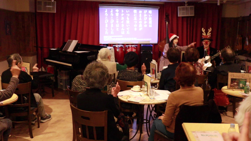 ラストソングは「きよしこの夜」。英語〜日本語で歌い、最後は全員で「メリークリスマス!!」と声をそろえて気持ちもひとつに。きよらかな心持ちで今年の歌声喫茶は幕を閉じました。