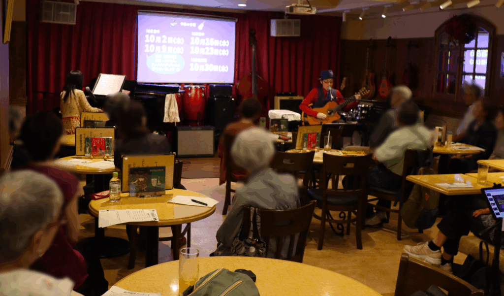 短時間の収録でしたが、ラストにほど近い時間帯、歌声喫茶の良い雰囲気を撮ってもらえたのではないかと思います!