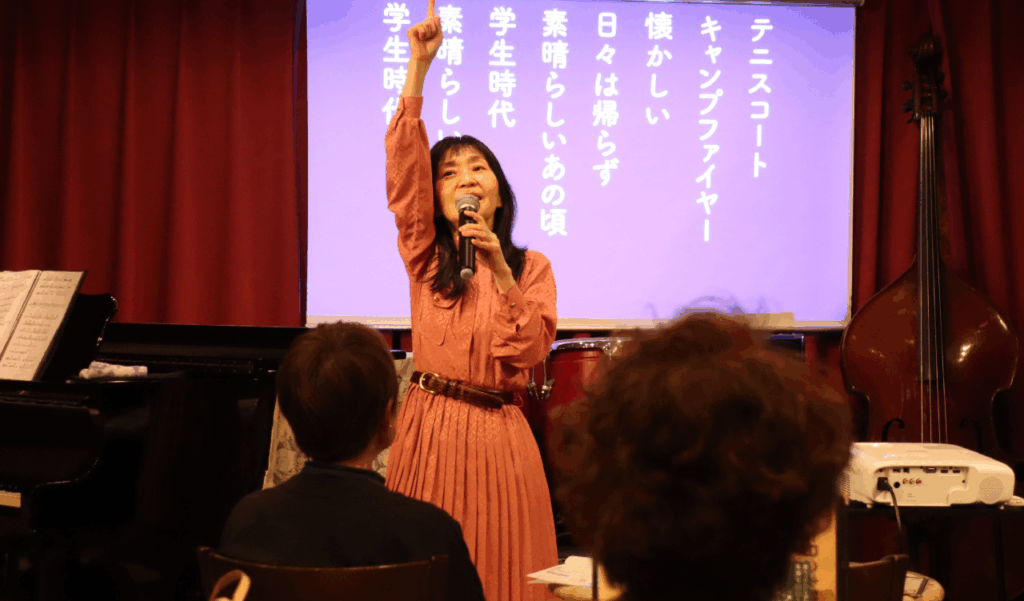 10月後半の歌声喫茶、二十四節気の《霜降》を過ぎ、朝晩の冷え込みが感じられるようになってきました。暦の上では秋も終わりにさしかかる頃。そんな季節に似つかわしいのが文部省唱歌「野菊」。これから「霜が降りても負けないで」の歌詞がいっそう身にしみてきそうです。