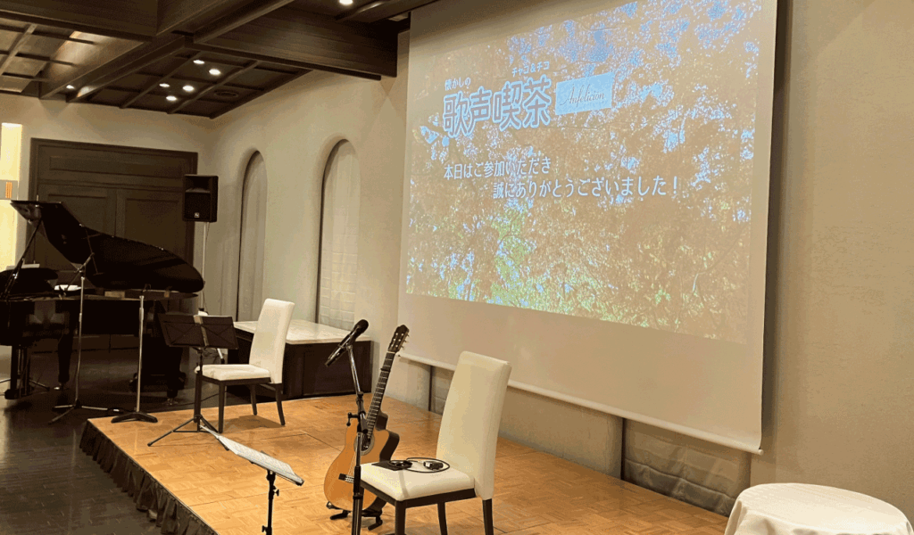 2013年からはじまったチャコ&チコの歌声喫茶は、コロナによる休止期間を経て、2023年9月より2〜3か月に一度開催、季節の色合いを感じながら懐かしい歌を楽しんでいただく場をつくるべく努めてまいりました。ご不便をおかけすることも多々あったと思いますが、皆さまのご厚意とご協力により、開催を継続することができました。本当にありがとうございます。
