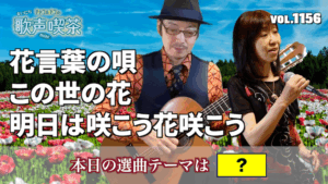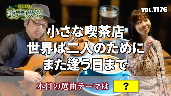 月・水・金曜 午前9:00更新懐かしい愛唱歌とチャコ&チコの他愛ないおしゃべりの20分番組。チャコ&チコの歌声喫茶でおなじみの準備体操(肩まわし、ギューストン)と発声練習も行います。心身ともにリラックスするひとときをお楽しみください。 ※上の《最新の配信を見る》ボタンを押すと直近の配信が見られます。 みなさまの歌にまつわる思い出やエピソード、番組の感想、チャコチコへのメッセージなど、上の「お便り募集」ボタンを押して入力フォームからお寄せください。番組内でご紹介させていただきます。 |